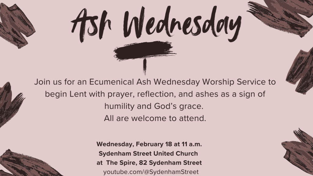 Sunday Services for Sydenham Street United Church are held at 11:00 hr, in person in the Sanctuary of The Spire at 82 Sydenham Street, Kingston, with our minister, The Reverend Catherine Elsdon!